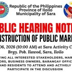 Ang Municipality of Sara nagapahibalo sa tanan nga pumuluyo nga may yara sang Public Hearing parte sa “Construction of Public Market.” Petsa: Abril 6, 2026� Oras: 10:00 AM� Lugar: Sara continue reading : 📢 PUBLIC HEARING NOTICE