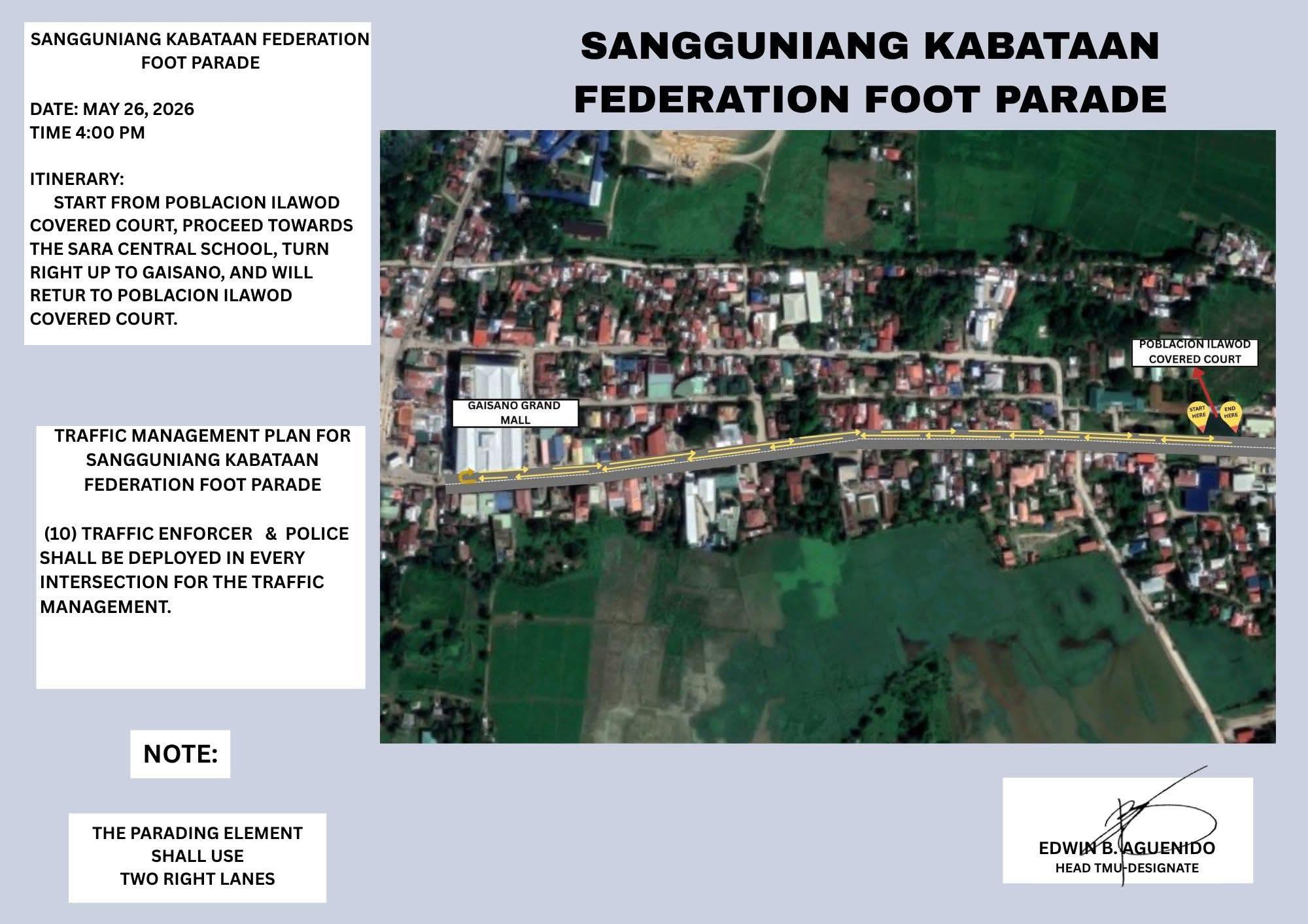THE SARA CENTRAL SCHOOL, TURN RIGHT UP TO GAISANO, AND WILL RETUR TO POBLACION ILAWOD COVERED COURT.