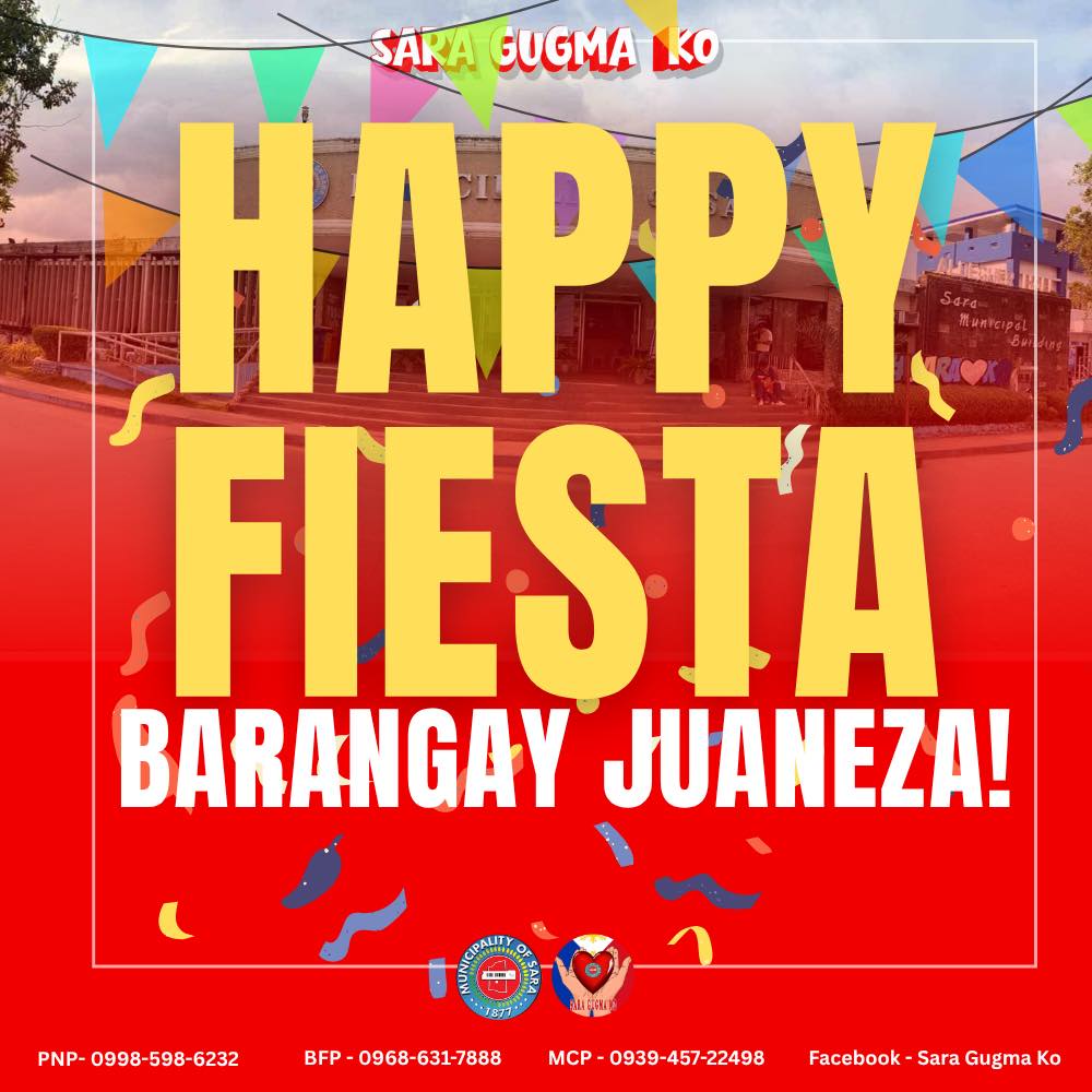 Malipayon nga Pista, Barangay Juaneza. Sa sini nga balaan kag masinadyaon nga okasyon, ginadumdum ta ang matahum nga kasaysayan, marig-on nga paghiusa, kag matahum nga kultura sang aton barangay. Kabay pa mangin padayon ang grasya sa tagsa ka panimalay, magpuno sang kalinong kag kauswagan sa tagsa ka tagipusuon, kag magapadayon ang pag-uswag sang Barangay Juaneza bilang isa ka komunidad nga ginabugkos sang paghigugma kag pag-alagad.